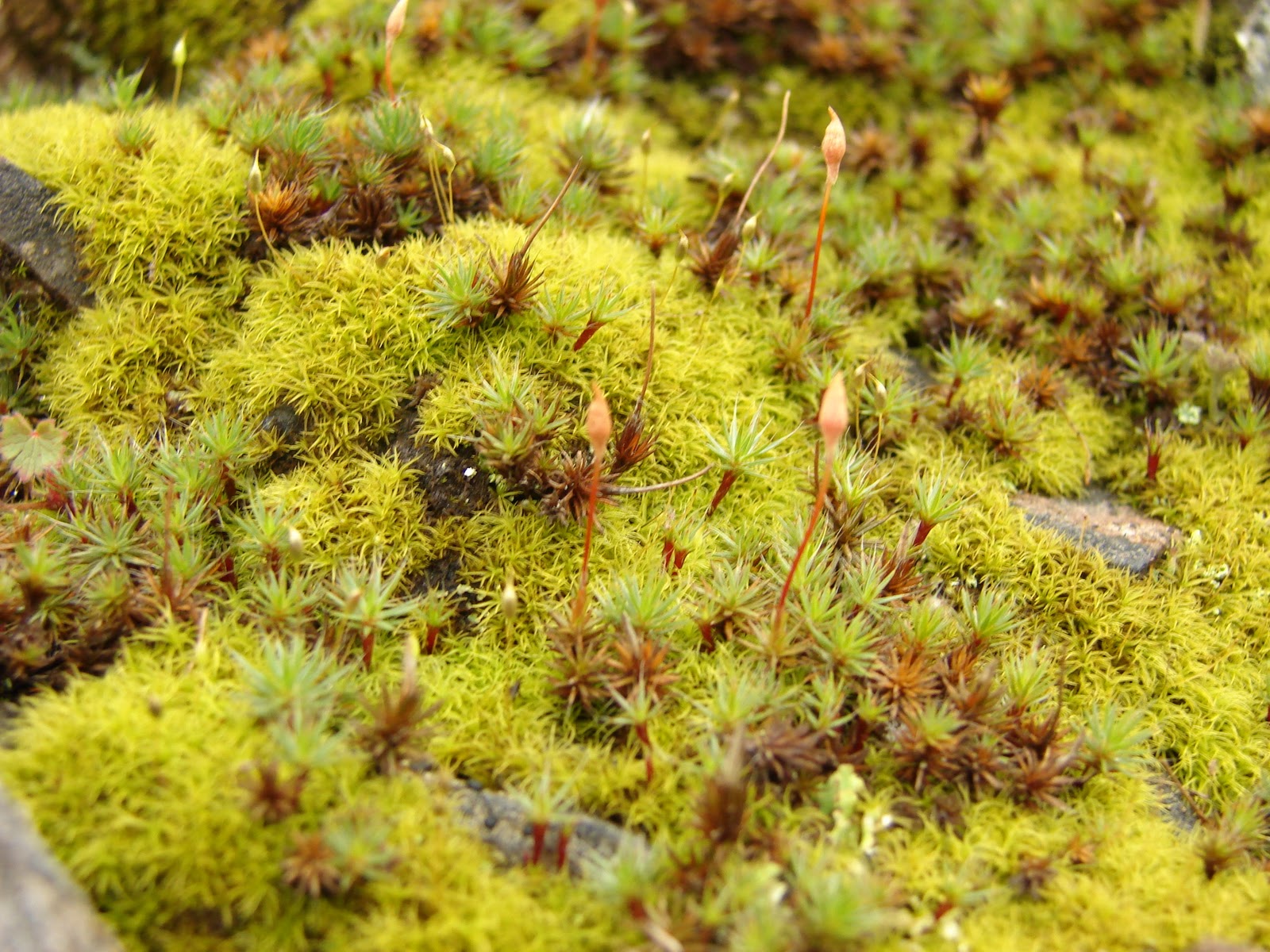 Em várias rochas observamos que estas estavam cobertas de plantas verdes, ou de outra cor. Estas plantas eram musgos e/ou líquenes.